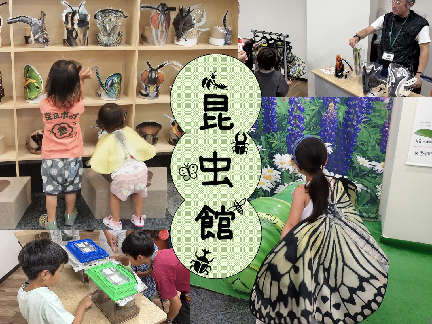 今年も昆虫館がやってきます!虫のお面や着ぐるみを着て、展示を見て楽しみましょう!