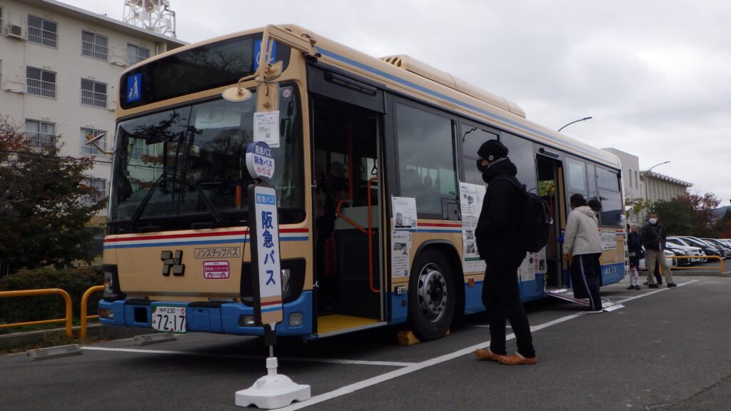 阪急バスの運転席にみんなで座ってみよう!(運転席での記念撮影もできるよ)