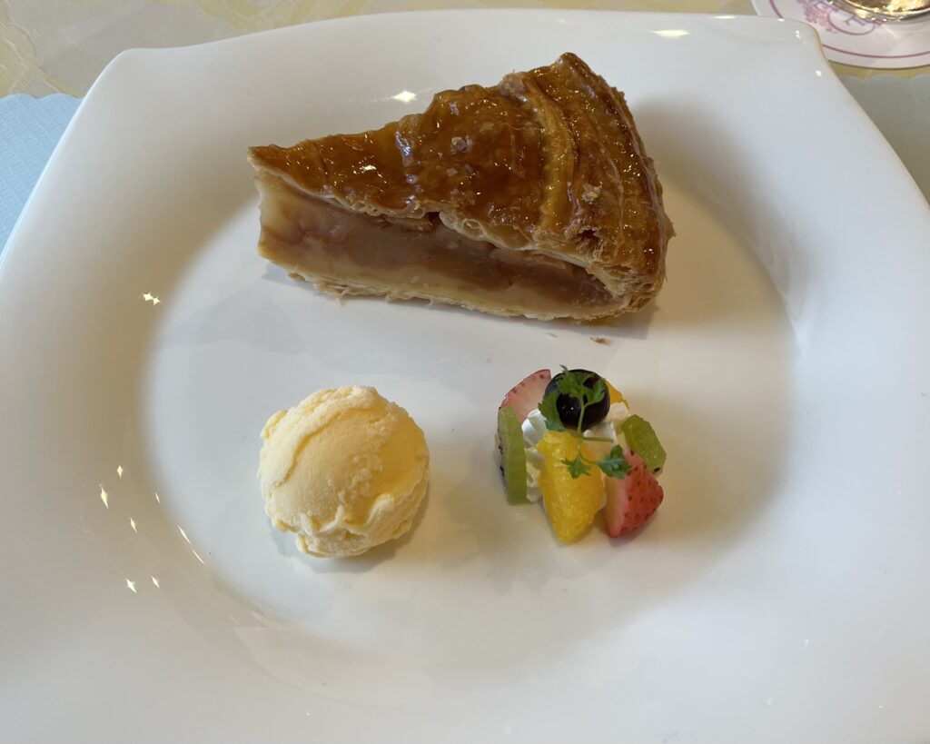 晴れた日の午後ティータイムで、宝塚ホテルのアップルパイをいただきました。生地はしっとり、りんごの果肉はたっぷり。アップルパイの横に添えられているアイスの甘さと、りんごの酸味が絶妙でとても美味しかったです。ぜひ一度皆様も食べてみてください。